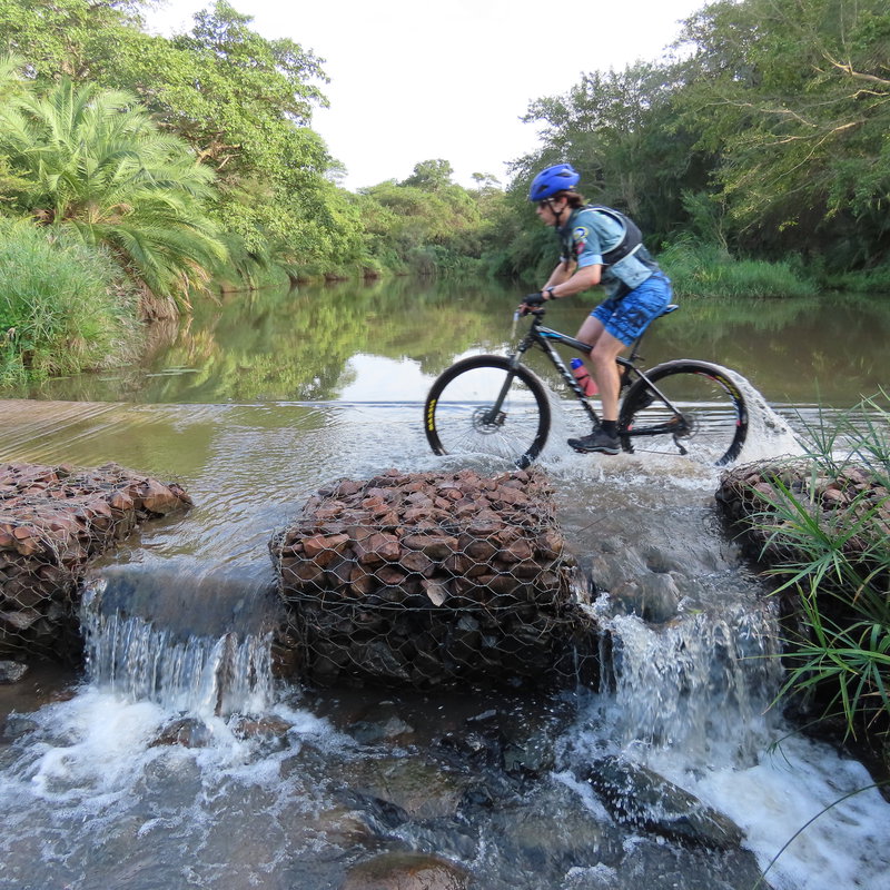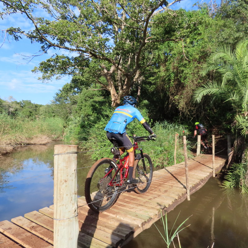 This option is for the up and coming young riders and takes then on a great flat and fast loop on jeep tracks through the scenic Mbuluzi Game Reserve bush.